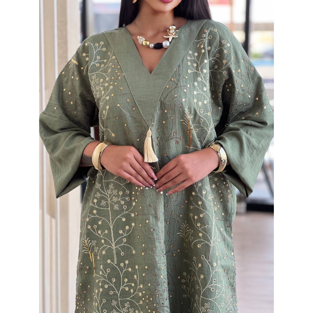استمتعي بإطلالة تجمع بين الفخامة والراحة مع العباية الحريمي المصنوعة من أجود أنواع الكتان الإسباني المستورد. تتميز هذه العباية بخامة عالية الجودة، باردة على الجسم، ومثالية للاستخدام اليومي أو المناسبات التي تتطلب مظهراً أنيقاً وعملياً في آن واحد.